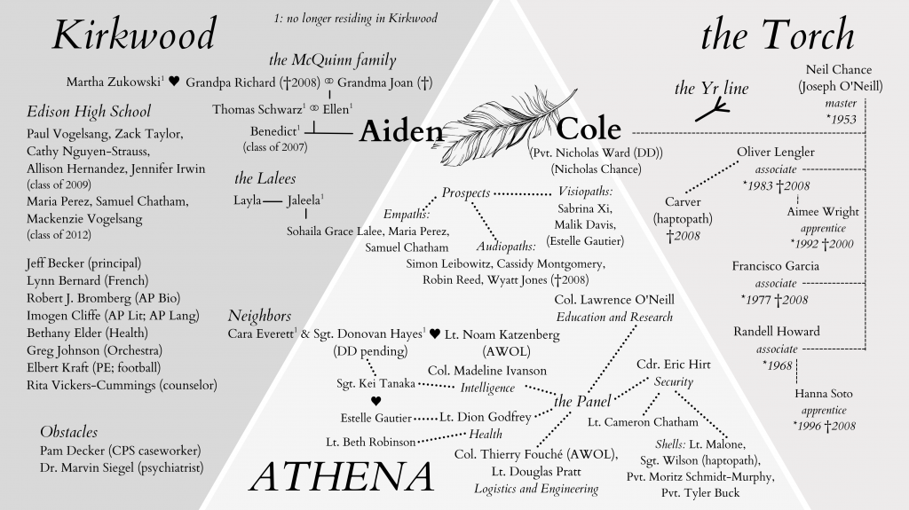 Aiden has made it home, but danger smolders below the surface of her days. Commander Hirt is imposing draconian rules on her household, and keeping the young empaths out of his grasp is burning her strength away. When ATHENA paroles Cole, Aiden is forced to face the cost of her collaboration with the Agency: Cole’s past is still holding him prisoner, and if she can’t rekindle the ashes of his trust, his self-hatred will consume him entirely. Reaching out to Cole in defiance of the Agency’s orders might take a toll much higher than her life — and yet, one last time, Aiden can’t help but try.